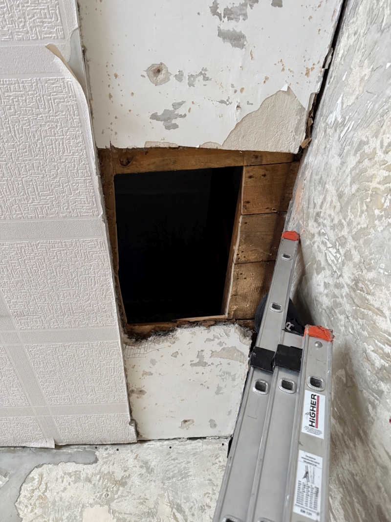 W sobotę 7 lutego 2026 r. wycięty został otwór w sufice ułatwiający dojście na strych po prawej stronie dachu. Zamontowany zostanie tam właz ze schodami strychowymi.